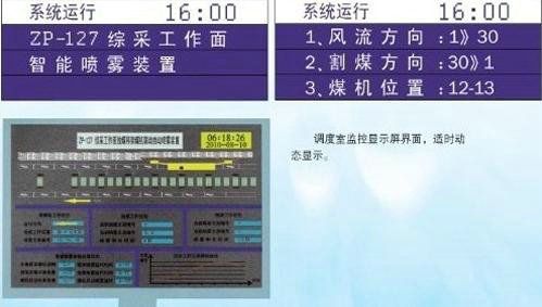 例如綜放工作面智能定位噴霧降塵系統(tǒng)工作面監(jiān)控信息包括:采煤機(jī)當(dāng)前的所在位置、允許方向、架間噴霧點道數(shù)、割煤道數(shù)、當(dāng)前移架和放煤及噴霧道數(shù)、生產(chǎn)允許圖標(biāo)及近3個月內(nèi)的生產(chǎn)運(yùn)行記錄等。